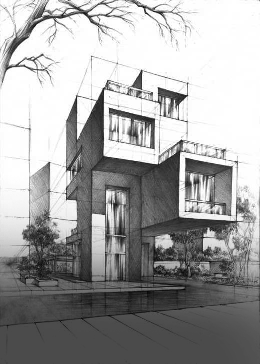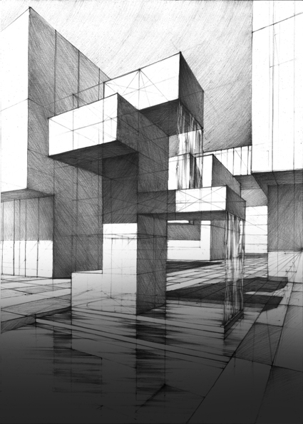Projektowanie architektury nowoczesnej, wykorzystanie perspektywy, skali i światłocienia w bardziej złożonych układach przestrzennych.