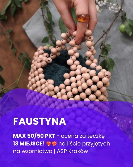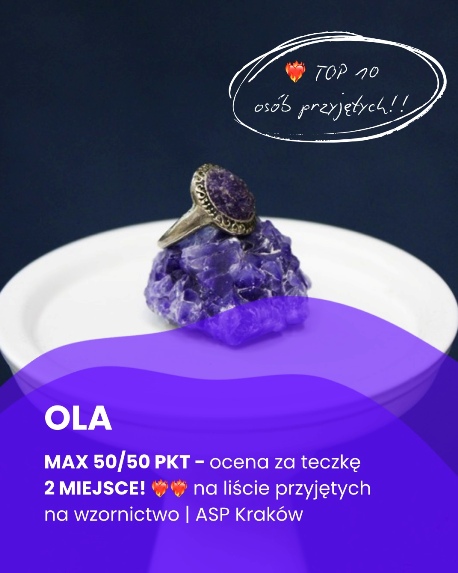 KorneliaW niecały rok uczęszczania na kurs dostałam się na upragniony kierunek studiów i odkryłam to, co naprawdę kocham w sztuce. Ala, Kasia i Ania są niesamowite - mają pokłady cierpliwości i ogromną wiedzę. Bardzo wspierają i są niezmiernie sympatyczne (zdecydowanie na plus latający po pracowni piesek jednej z prowadzących ;P). Nie żałuję swojego wyboru!