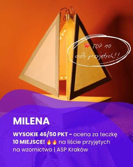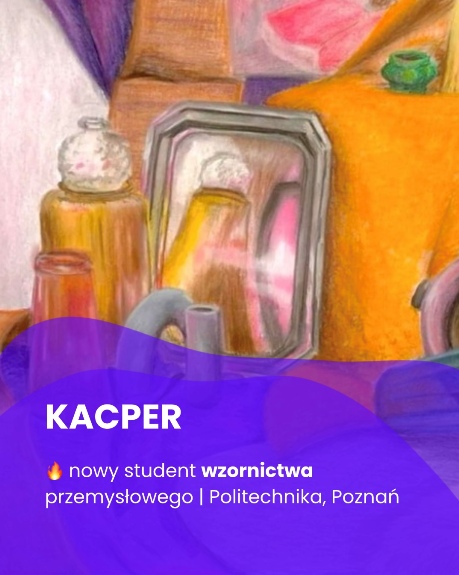 Mówiąc w naprawdę wielkim skrócie: Fantastyczna pracownia, dzięki której mogłem wykrzesać z siebie 100% potencjału. Rewelacyjni prowadzący, wyznaczający twórcze i rozwijające zadania, którzy potrafią udzielić pomocnych i praktycznych rad ale przede wszystkim zmotywować i zainspirować do dalszej pracy. Po roku odbywania kursu udało mi się uczynić progres jakiego się nie spodziewałem, co pozwoliło mi zająć wysoką lokatę w rekrutacji na wymarzony kierunek studiów - Wzornictwo na ASP.